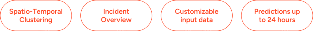 Pantauan secara real-time titik panas dan perkembangannya menggunakan teknologi AI. Teknologi AI membantu menentukan arah perambatan api selama 24 jam dengan prakiraan luasan area yang terdampak. Selain itu, Incident Overview secara near-real time juga diberikan untuk menghasilkan data history yang akurat dan titik api terbaru di lokasi kejadian.
