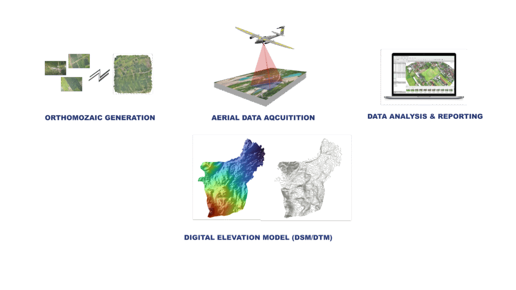Layanan survei fotogrametri kami menggunakan UAV Trinity PRO (Fix Wings eVTOL) untuk menghasilkan citra udara (Orthomozaic) dengan format (GeoTIFF/JPEG), layanan ini juga menghasilkan beberapa output untuk berbagai keperluan bidang di Indonesia. Diantara ouput yang dapat dihasilkan lainnya, DEM, DTM, 3D Modelling, dan Analisis data spasial berbasis sistem informasi geografis.