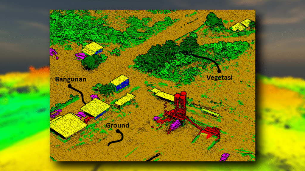 Data Siap Pakai, Bukan Sekadar Titik. Output LiDAR kami telah melalui proses klasifikasi objek yang detail. Kami memisahkan layer Tanah (Ground), Vegetasi, Bangunan, dan Air secara akurat. Mempercepat kerja tim engineering Anda dalam melakukan filtering data untuk kebutuhan pemodelan 3D maupun analisis spasial lanjutan